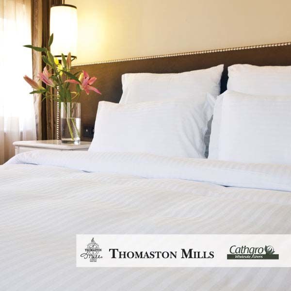 Royal Suite Program from Thomaston Mills Standard/Queen Pillowcases – 310 Thread Count – 42×36 / 42×40 – Tone On Tone White Stripe-Case of 2 Dozen