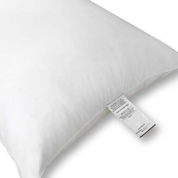 Each pillow arrives with a woven label that identifies the fill and recommended room placement.