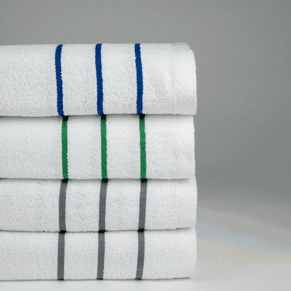 Island Stripe Pool Towels are engineered to deliver superior comfort and luxury over the long term, despite the stresses of institutional laundering. Constructed with high quality yarns, stong weaving, shade control, color fastness and selvedge edges, these towels are specifically designed for long term value. Don’t lose money by buying low-cost towels that you will constantly have to replace. Save money by using the lowest cos-of-use products available from Thomaston Mills!