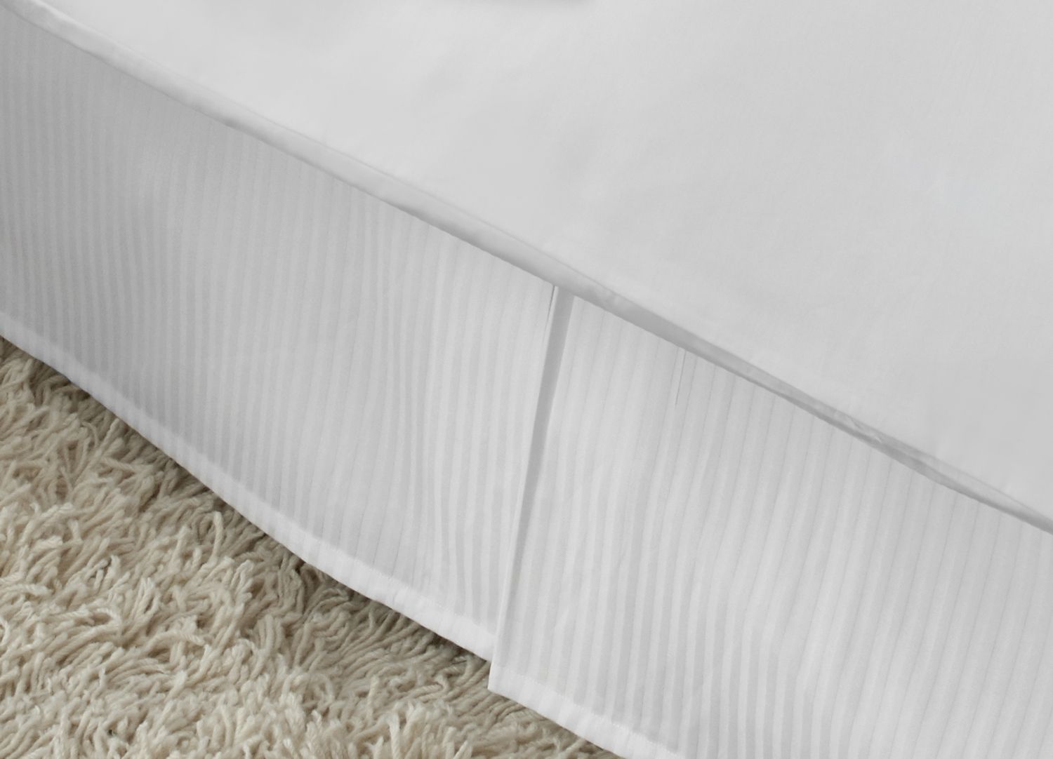 Martex Five Star Hotel Bedskirt-T-300-Fresh White-Sateen Stripe