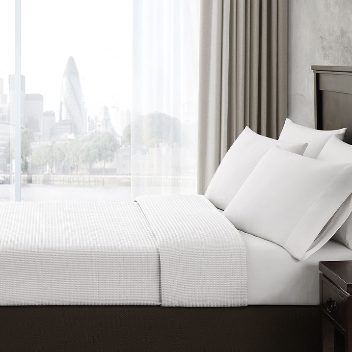 A modern rendition of a classic waffle weave with a twist.