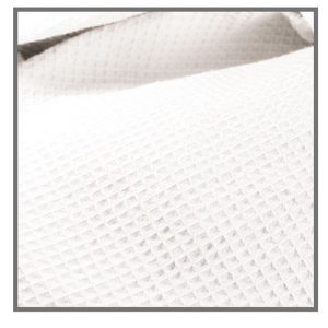 A modern rendition of a classic waffle weave with a twist. The small-scale pattern interpretation adds rich texture.